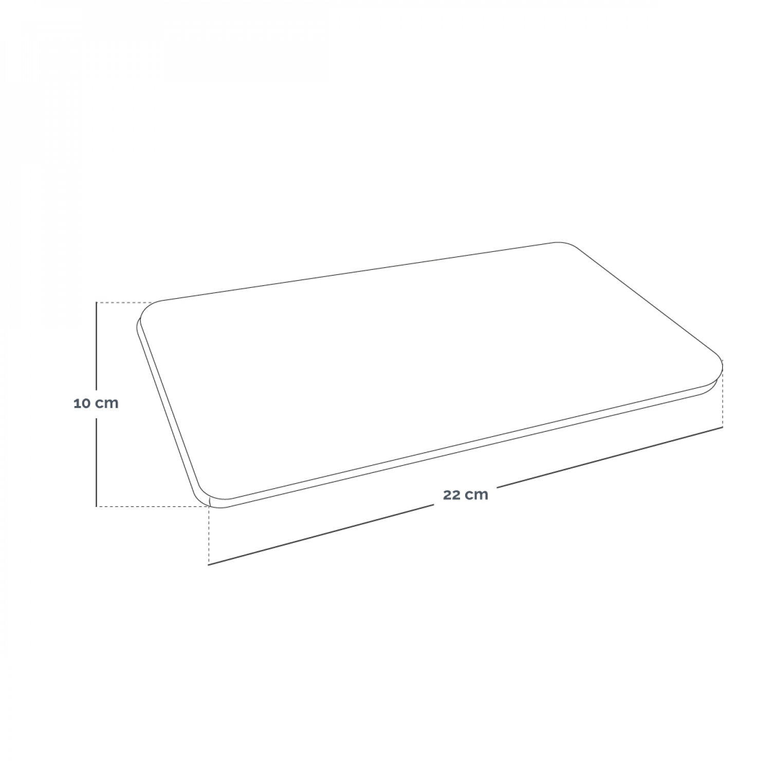 Sa taille compacte, 22 cm de long et 10 cm de large, la rend facile à positionner sur toutes les zones du corps : nuque, épaules, dos, ventre, genoux, chevilles… Elle épouse parfaitement les formes pour un contact optimal et un soulagement ciblé.