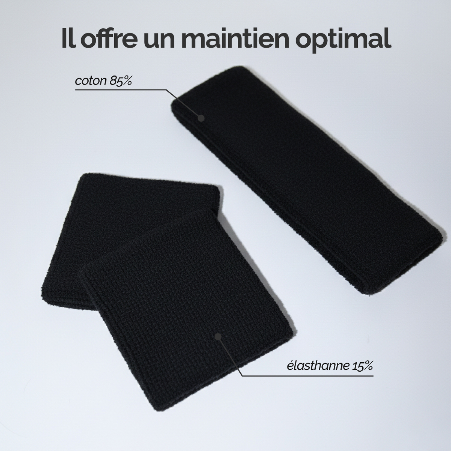 Le bandeau absorbant est votre allié pour rester concentré durant l’effort. Grâce à sa capacité d’absorption optimale, il empêche la transpiration de couler sur le visage et les yeux, garantissant un confort maximal. Avec ses dimensions de 5 x 18 cm, il épouse la tête sans compresser, offrant un maintien stable et agréable même pendant les séances les plus intenses.