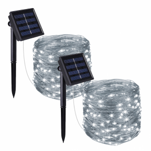 Lot de 2 guirlandes solaires extérieur lumineuses jardin, terrasse - Ampoules LED 8 modes - Linxor