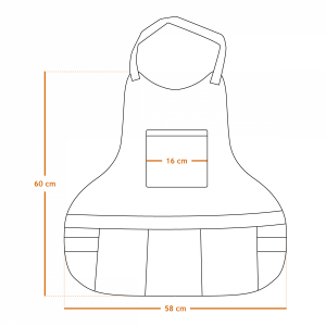 Entièrement réglable, le tablier est équipé de deux attaches, l'une au cou et l'autre dans le dos, assurant un maintien confortable et un ajustement parfait à toutes les morphologies.