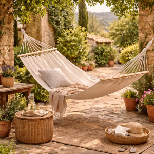 La toile de hamac Linxor accueille aisément jusqu'à deux personnes et offre un véritable espace de détente. Confortable, respirante et douce, elle invite naturellement à la sieste au soleil comme aux moments de calme à ciel ouvert. Installée dans un jardin, sous une pergola ou tendue entre deux arbres complices, elle crée une parenthèse suspendue où le temps semble ralentir.