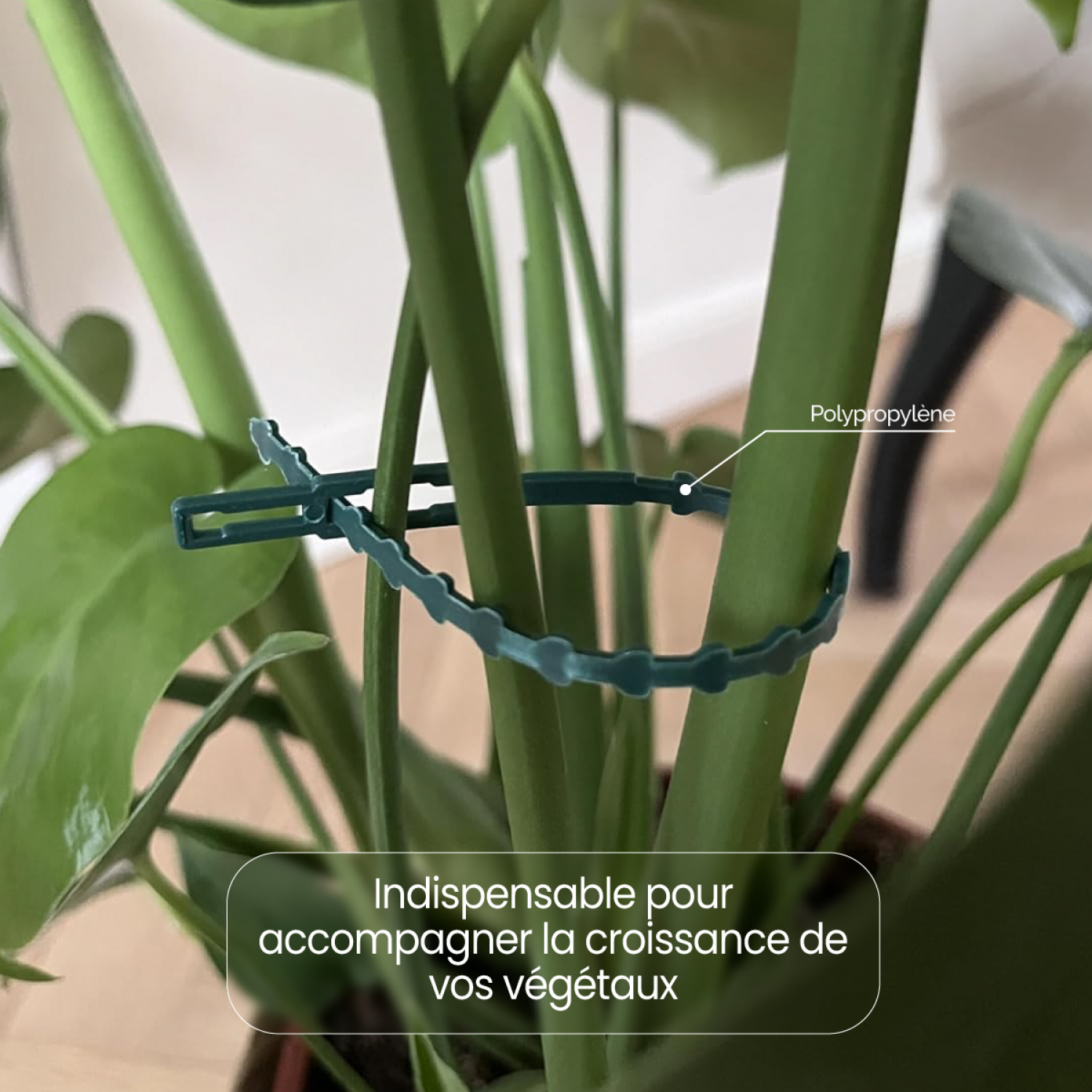 Grâce à leur système cranté, elles s'ajustent facilement à l'épaisseur de la tige et du support, assurant un maintien sûr sans serrer excessivement la plante.