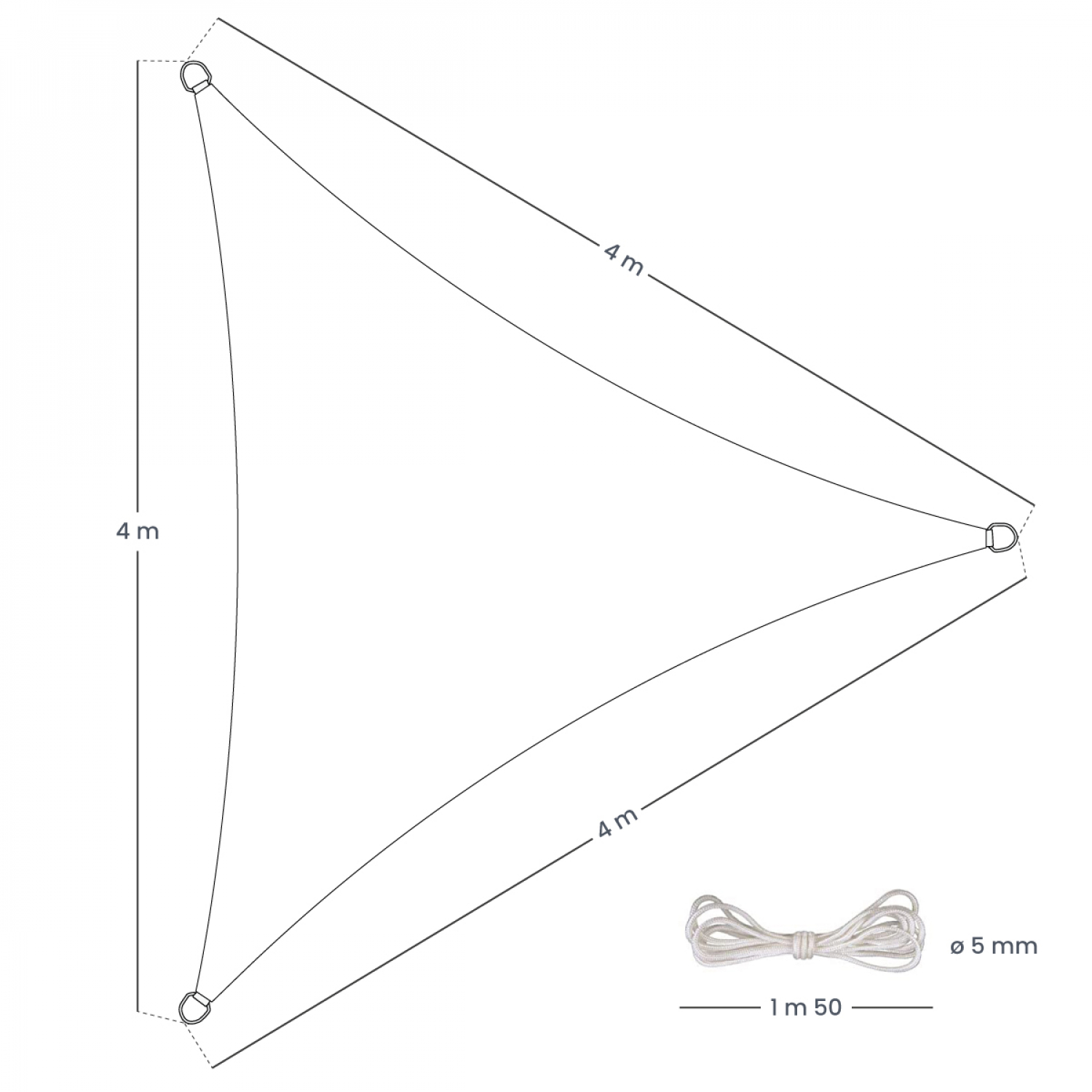 Pour une installation simple et sécurisée, le voile d'ombrage est fourni avec quatre cordes en nylon de 1,50 m et 5 mm de diamètre, garantissant une tension stable et une fixation fiable. Léger mais solide, il se manipule facilement et peut être retiré ou repositionné selon vos besoins et vos envies.