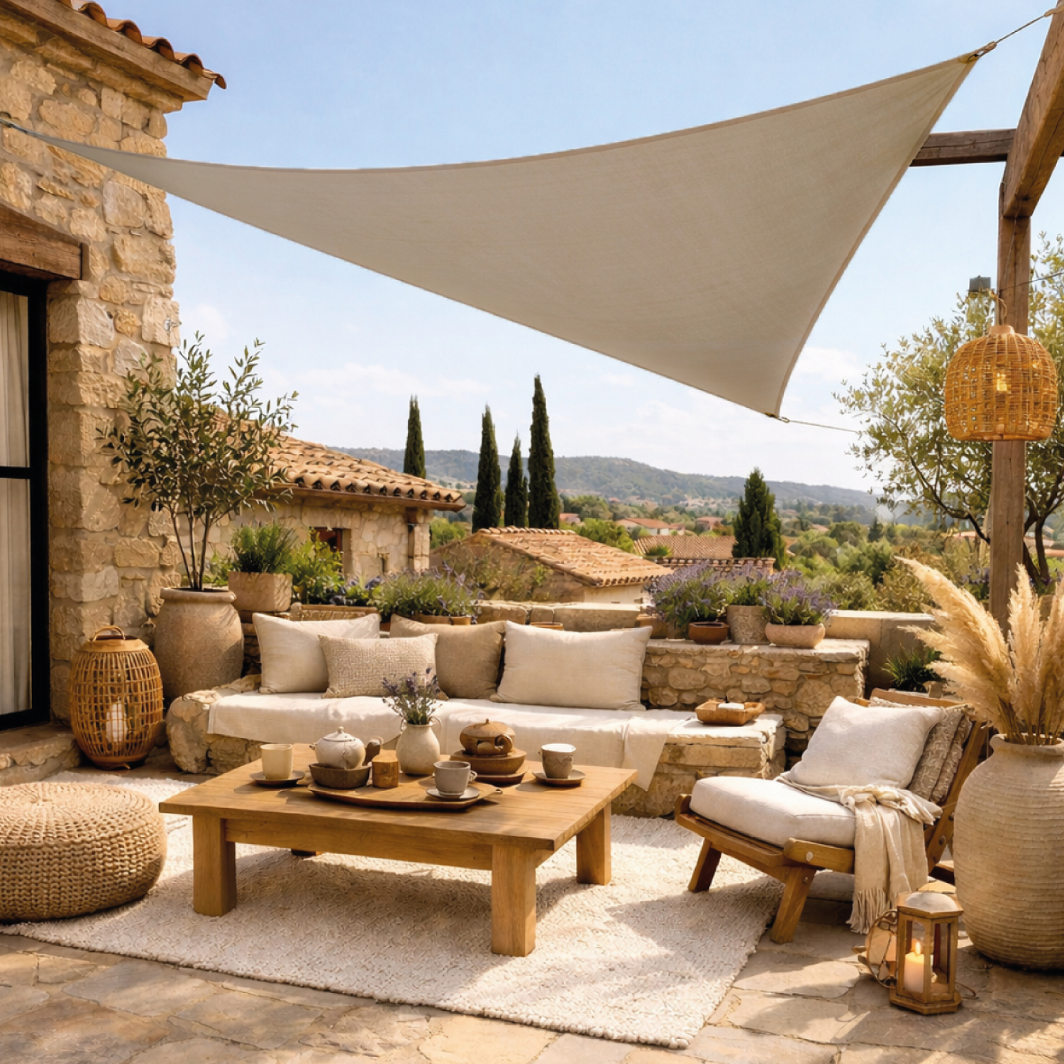 Sa forme Triangulaire permet de couvrir une zone généreuse et de structurer visuellement l'espace, tout en apportant une touche moderne à votre extérieur.