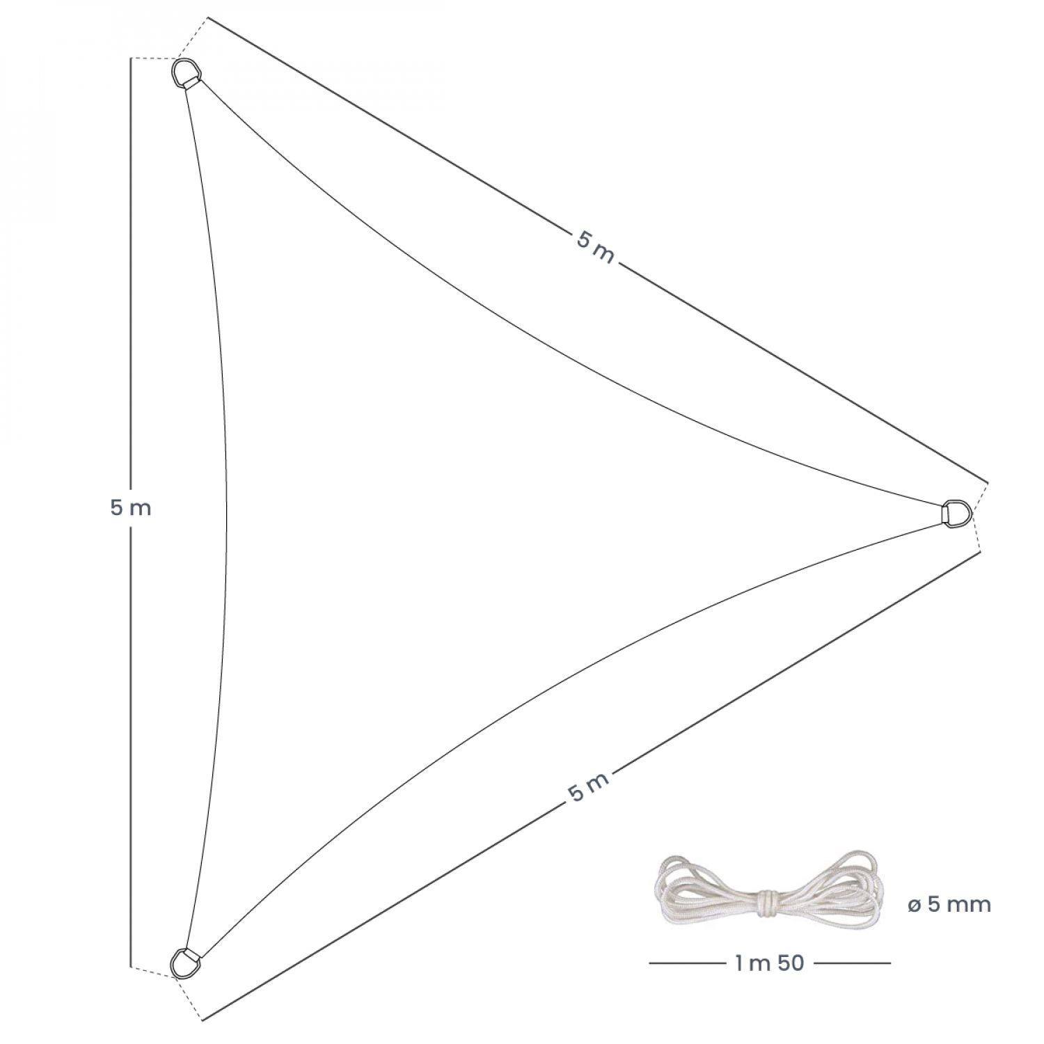 Pour une installation simple et sécurisée, le voile d'ombrage est fourni avec quatre cordes en nylon de 1,50 m et 5 mm de diamètre, garantissant une tension stable et une fixation fiable. Léger mais solide, il se manipule facilement et peut être retiré ou repositionné selon vos besoins et vos envies.