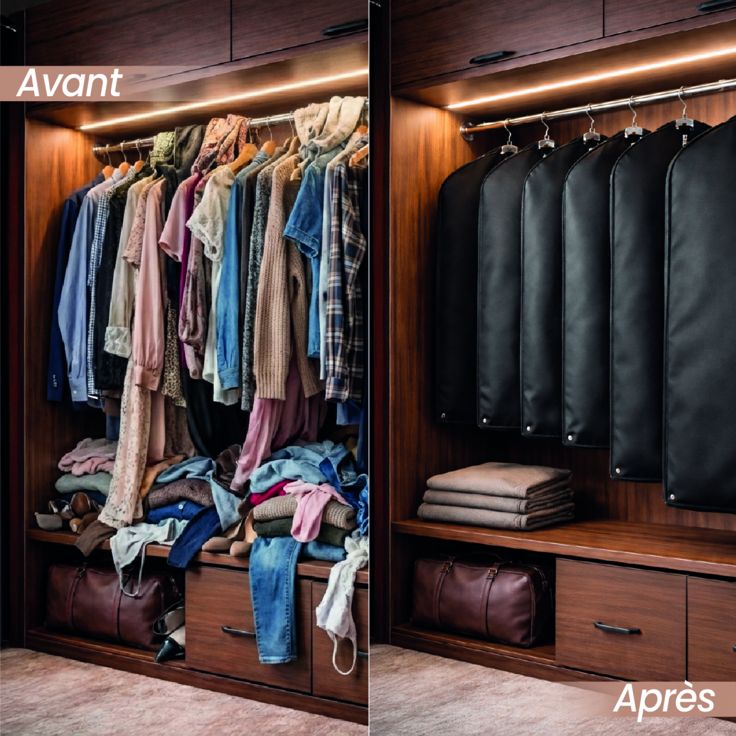 Alliant qualité, élégance et fonctionnalité, la housse de vêtement premium est l'accessoire incontournable pour garder vos tenues propres, protégées et impeccables en toutes circonstances.