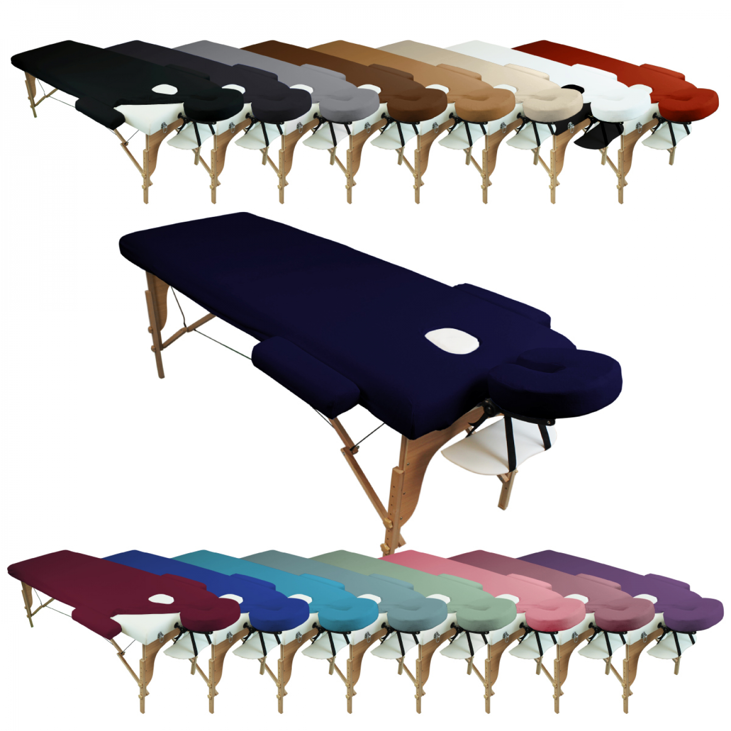 Ce kit complet de housses pour table de massage, en texture éponge, protège votre table de massage afin que les huiles utilisées n'abîment pas son revêtement.