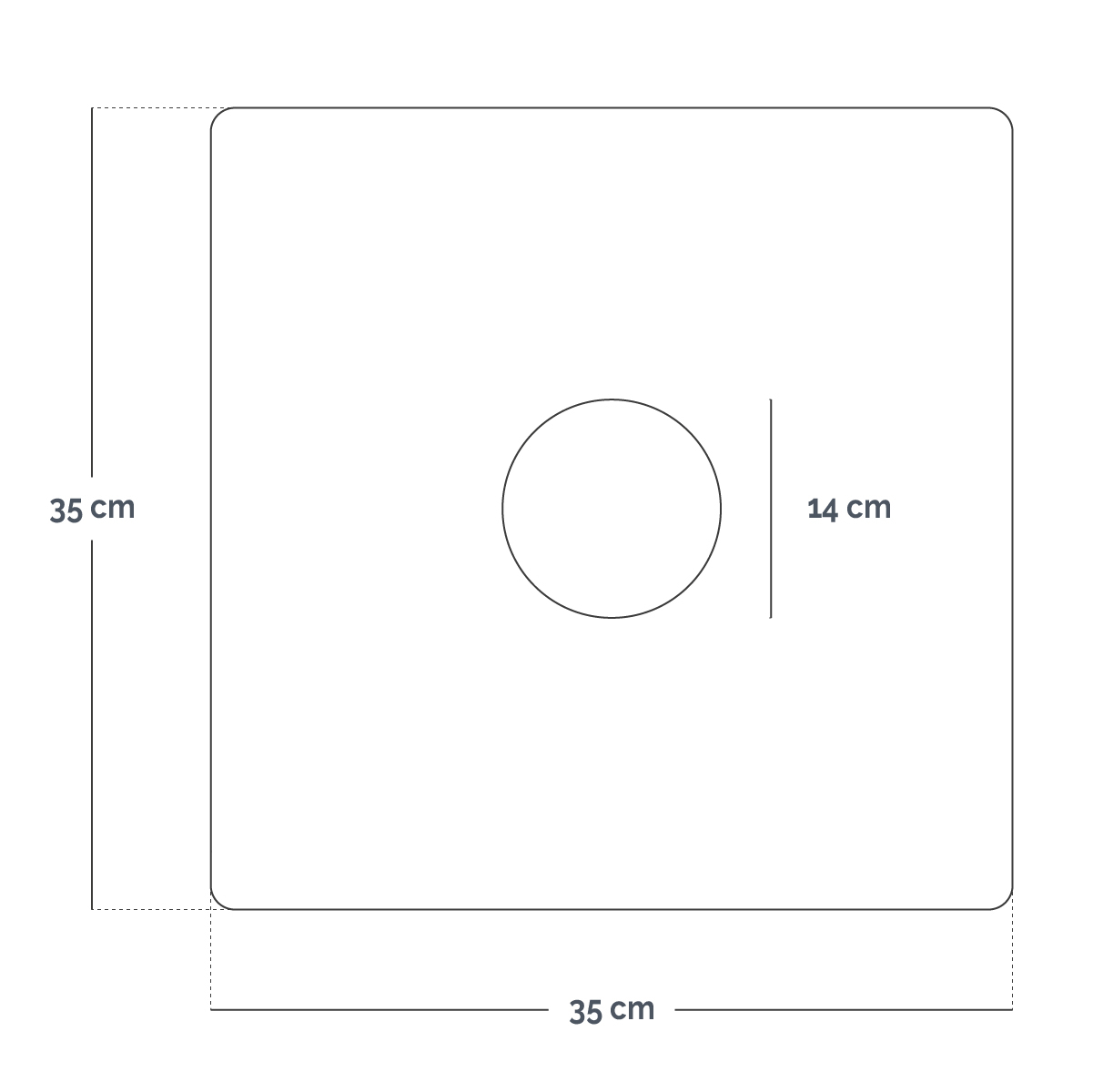Avec ses dimensions de 35 x 35 cm et son trou central de 14 cm, elle s'adapte parfaitement à la majorité des tables de massage. La cavité visage est ainsi protégée.