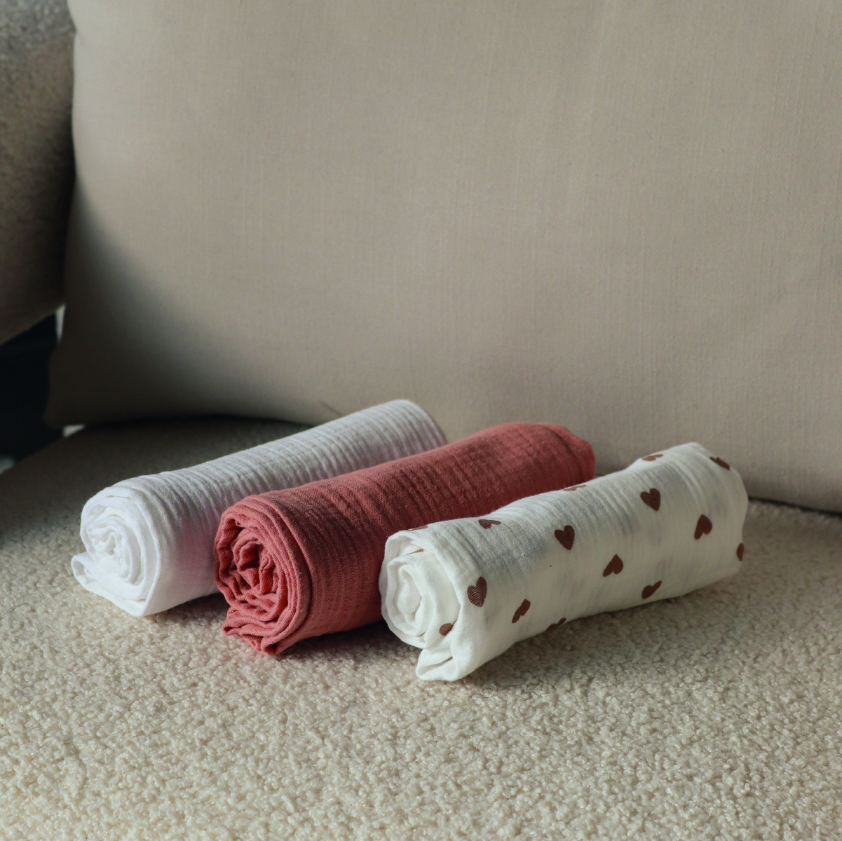 Avec ce lot de 3 langes en mousseline 65 x 65 cm, vous êtes sûrs d'avoir toujours un linge propre et doux à disposition, pour prendre soin de votre bébé avec sérénité.